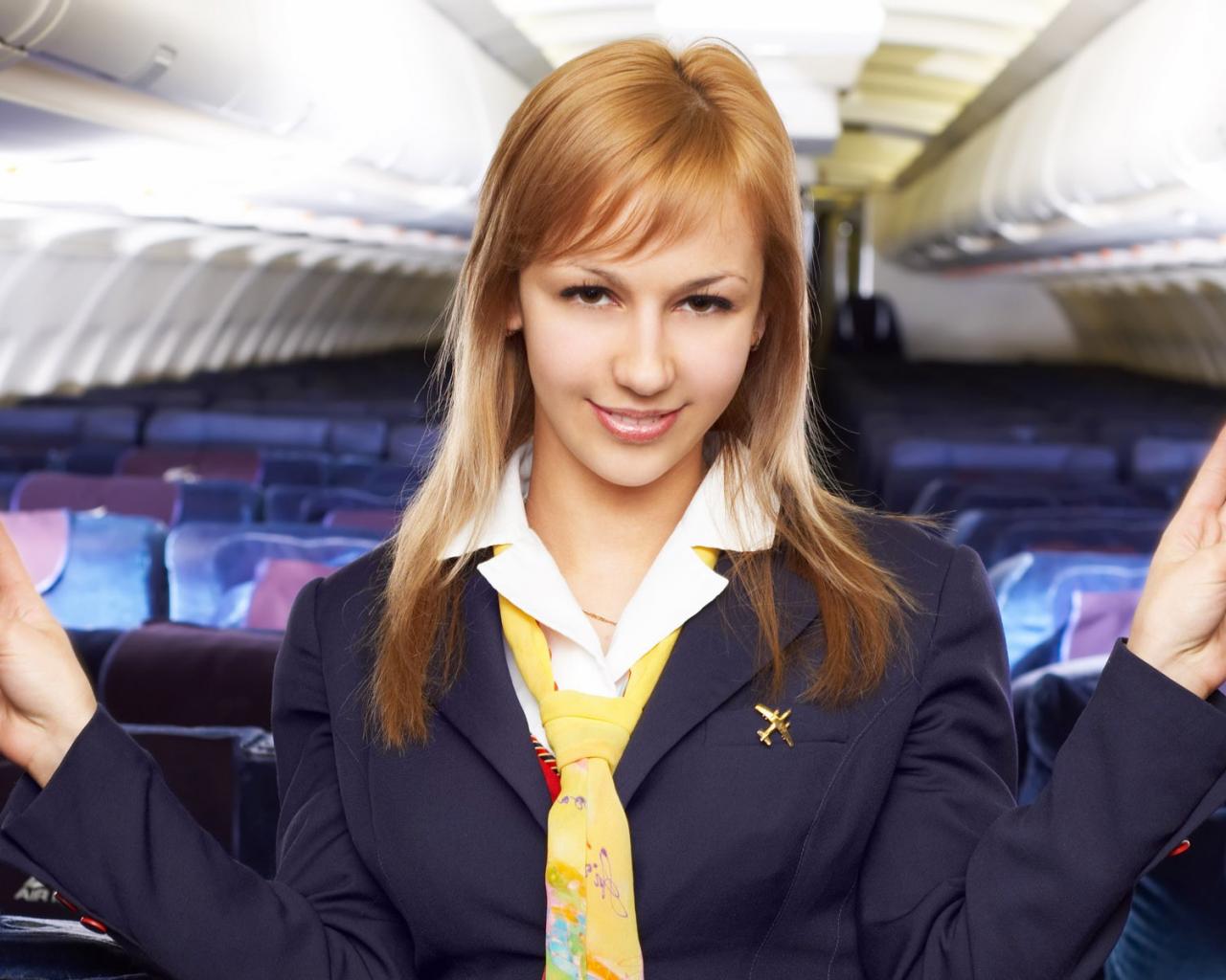 Обои Стюардесса блондинка