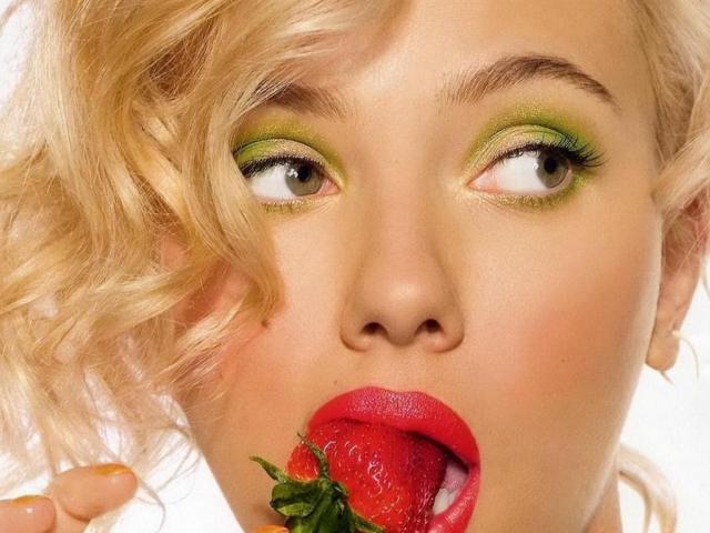 Обои Девушка ест клубнику