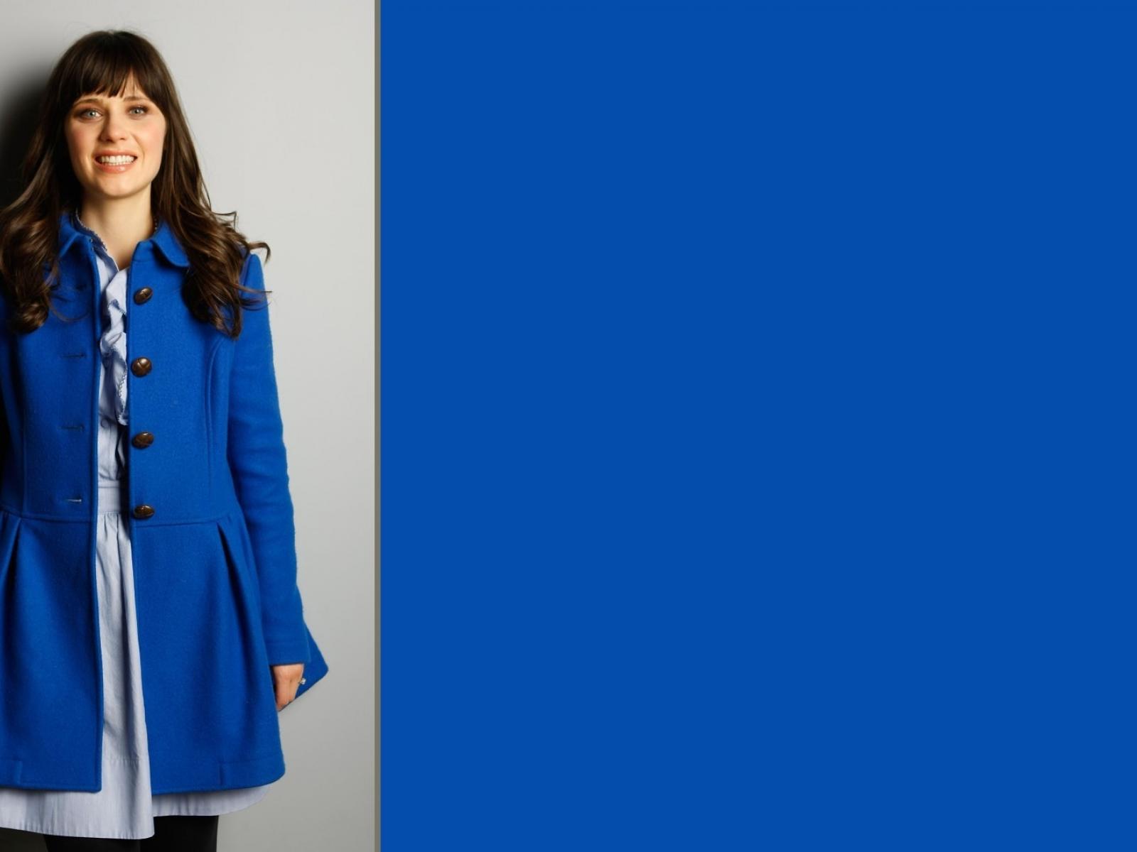 Обои Модель Зоуи Дешанель в голубом пальто