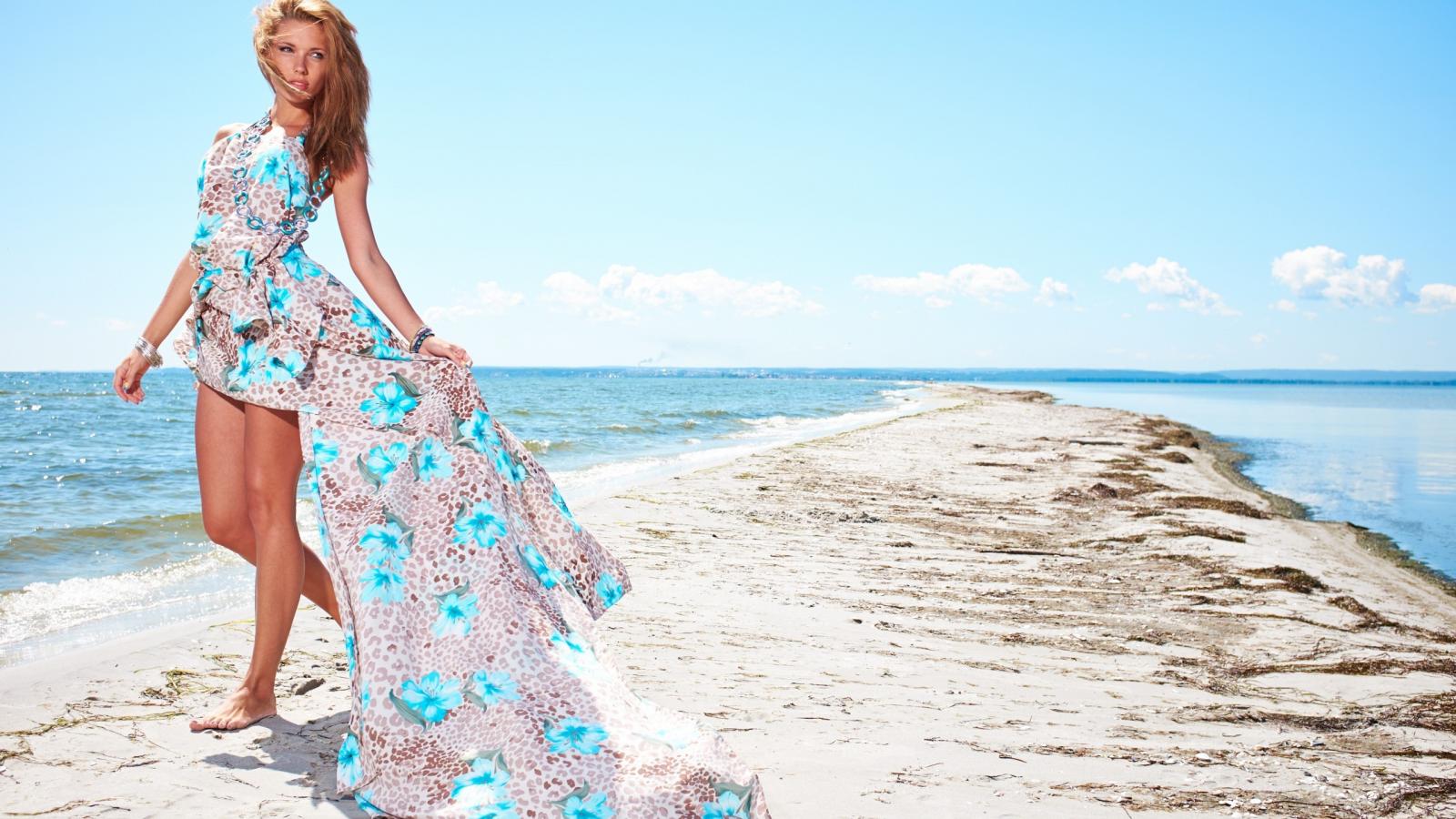 Обои Модель позирует на берегу моря