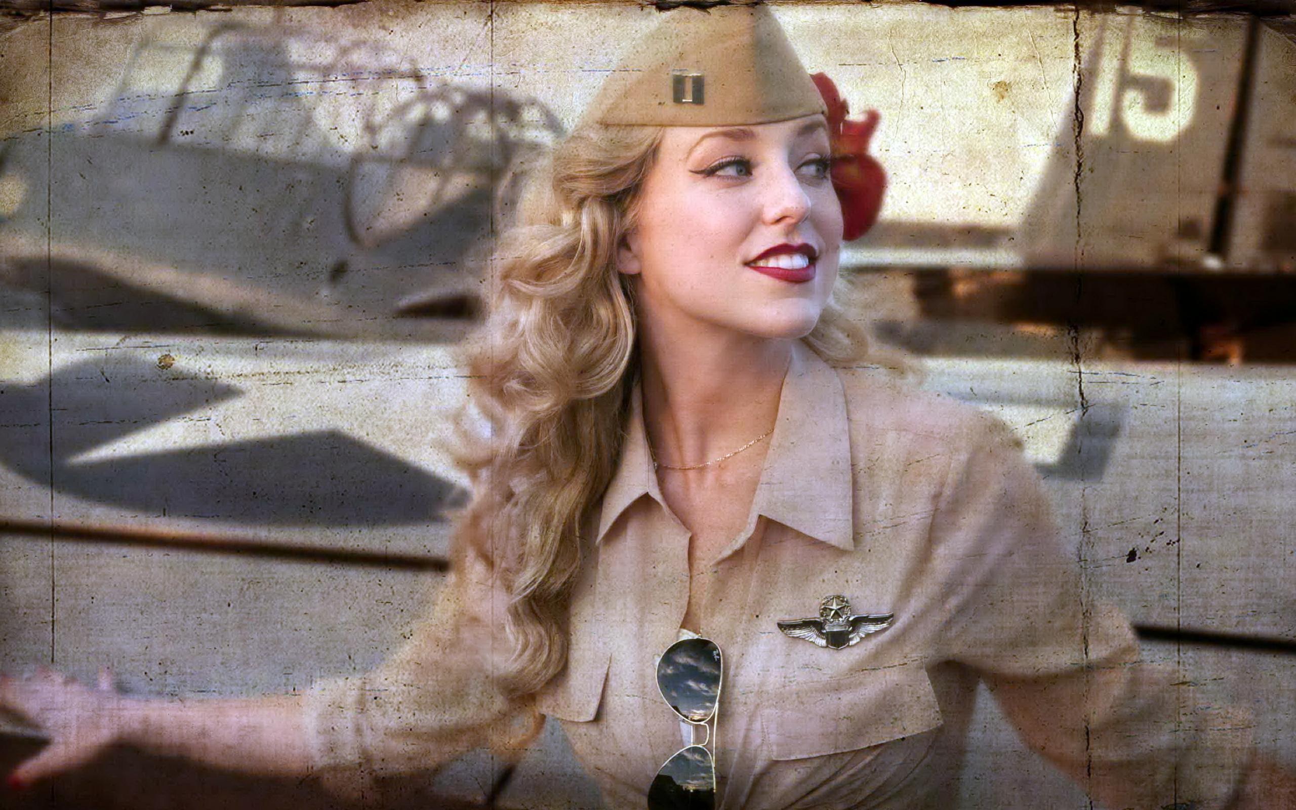 Обои Девушка в форме летчика