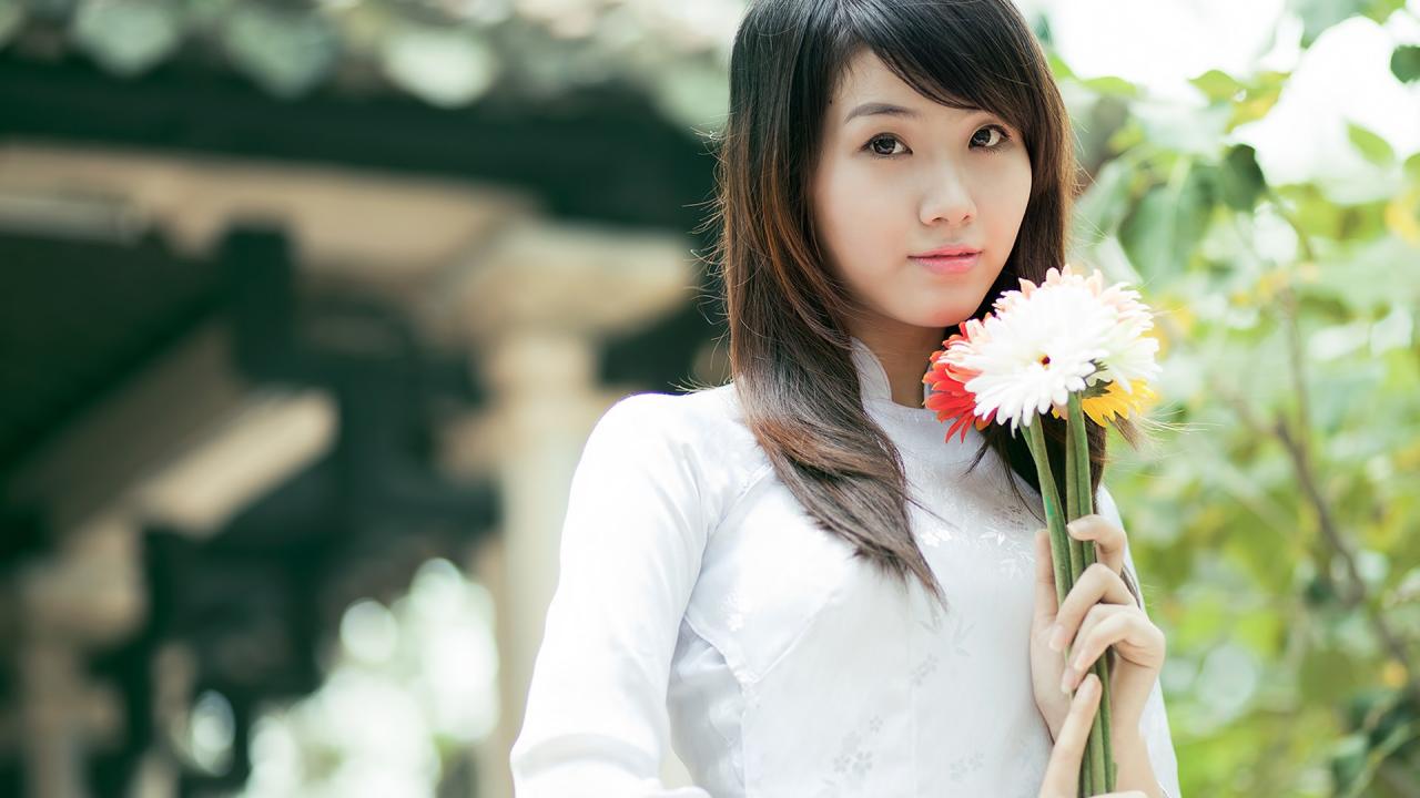 Обои Вьетнамская девушка с цветами