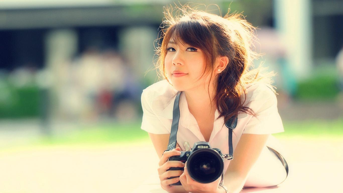 Обои Девушка с фотоаппаратом