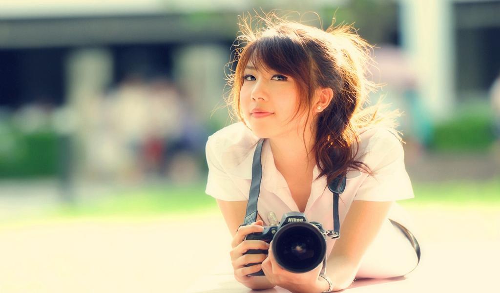 Обои Девушка с фотоаппаратом