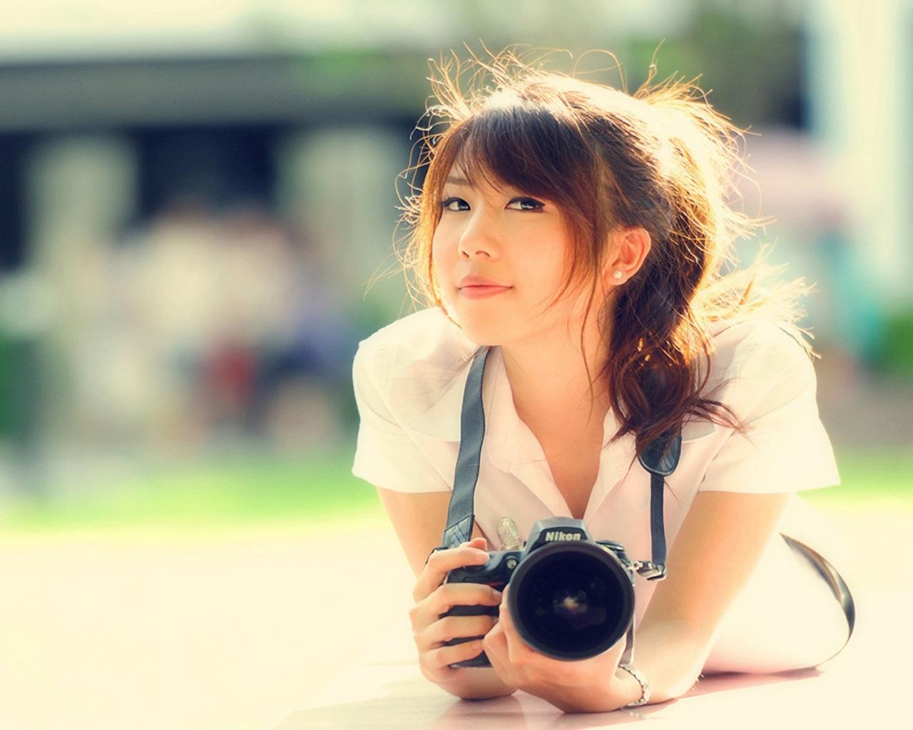 Обои Девушка с фотоаппаратом