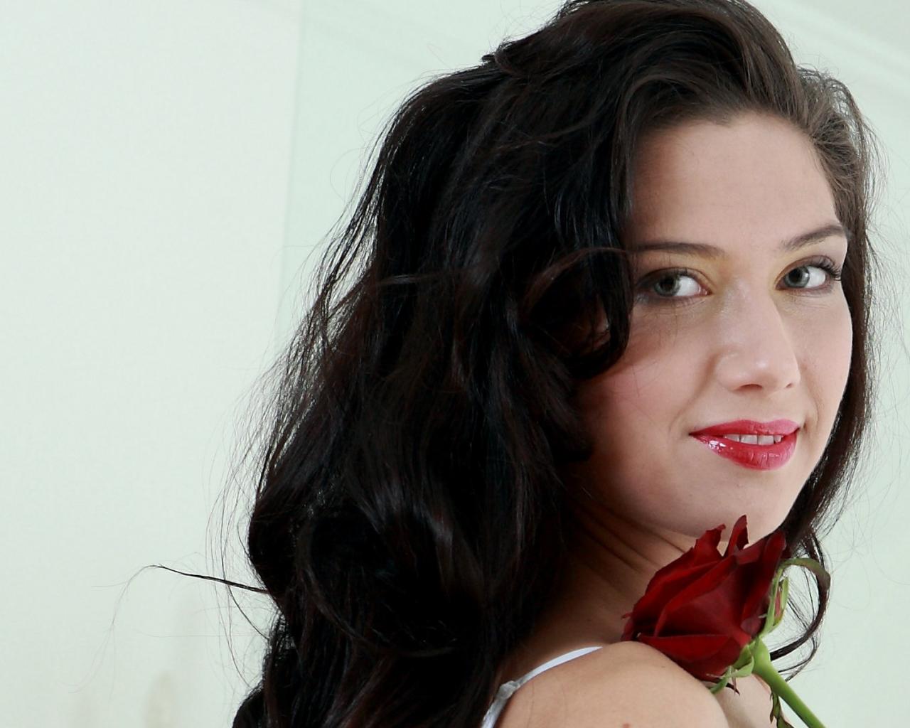 Обои Брюнетка Жанна с розой