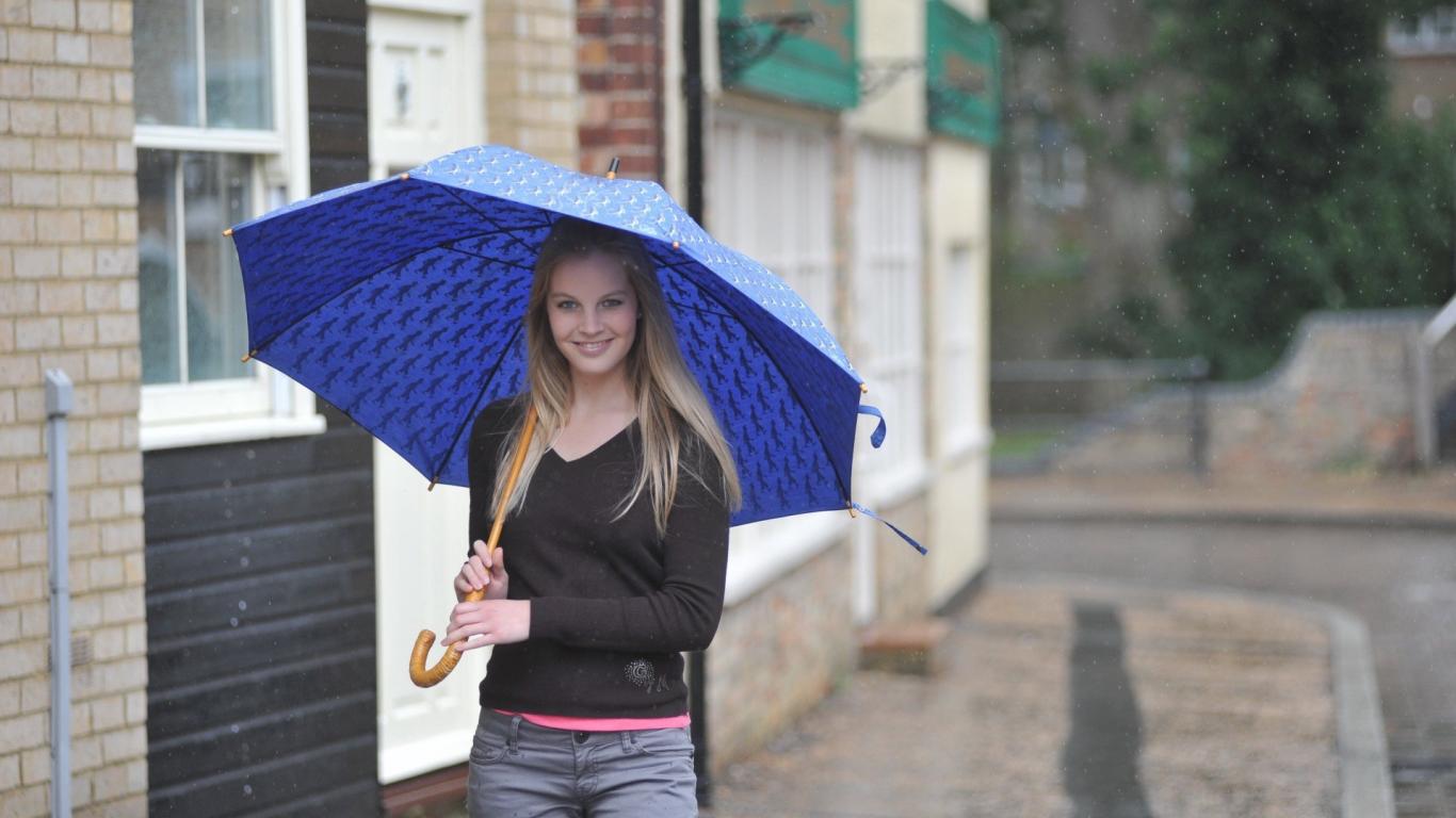 Обои Модель с синим зонтом