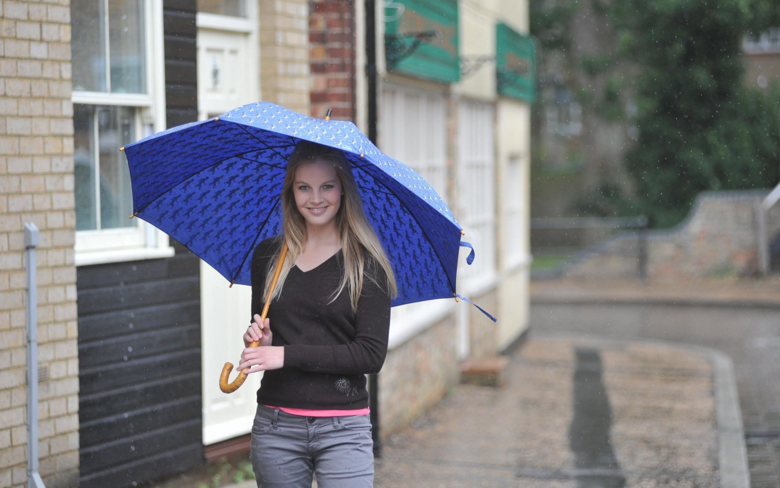 Обои Модель с синим зонтом