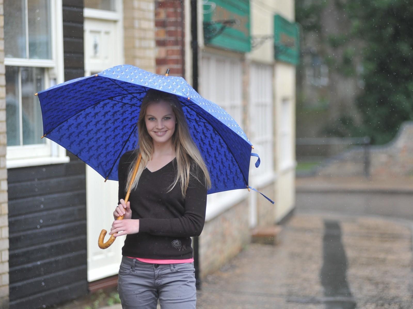 Обои Модель с синим зонтом