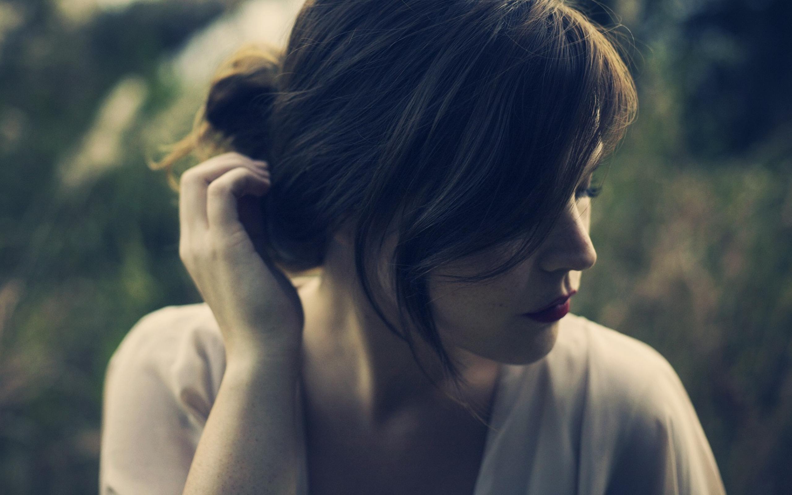 Обои Девушка поправляет волосы