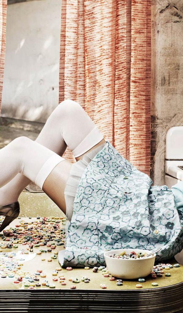 Обои Мариса Миллер на столе (Marisa Miller)