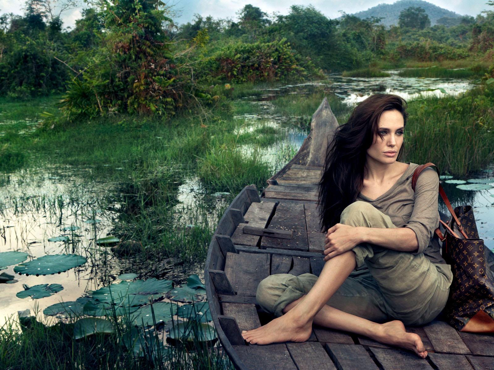 Обои Анджелина Джоли в лодке (Angelina Jolie)