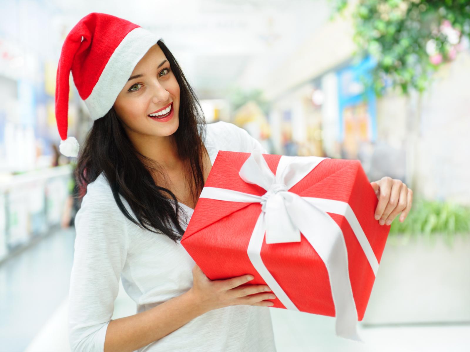 Обои Девушка с рождественским подарком