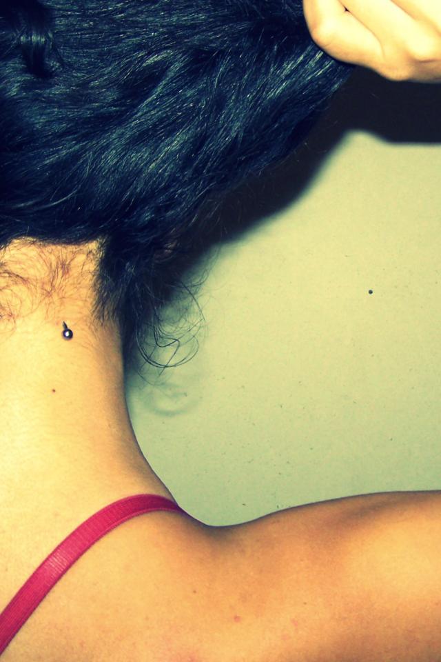 Обои Девушка брюнетка с пирсингом в губе и татуировкой на плече