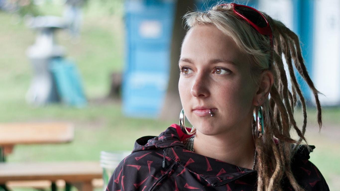 Обои Девушка блондинка с дредами и пирсингом в губе