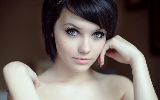 Обои Девушка брюнетка с короткими волосами и пирсингом в носу