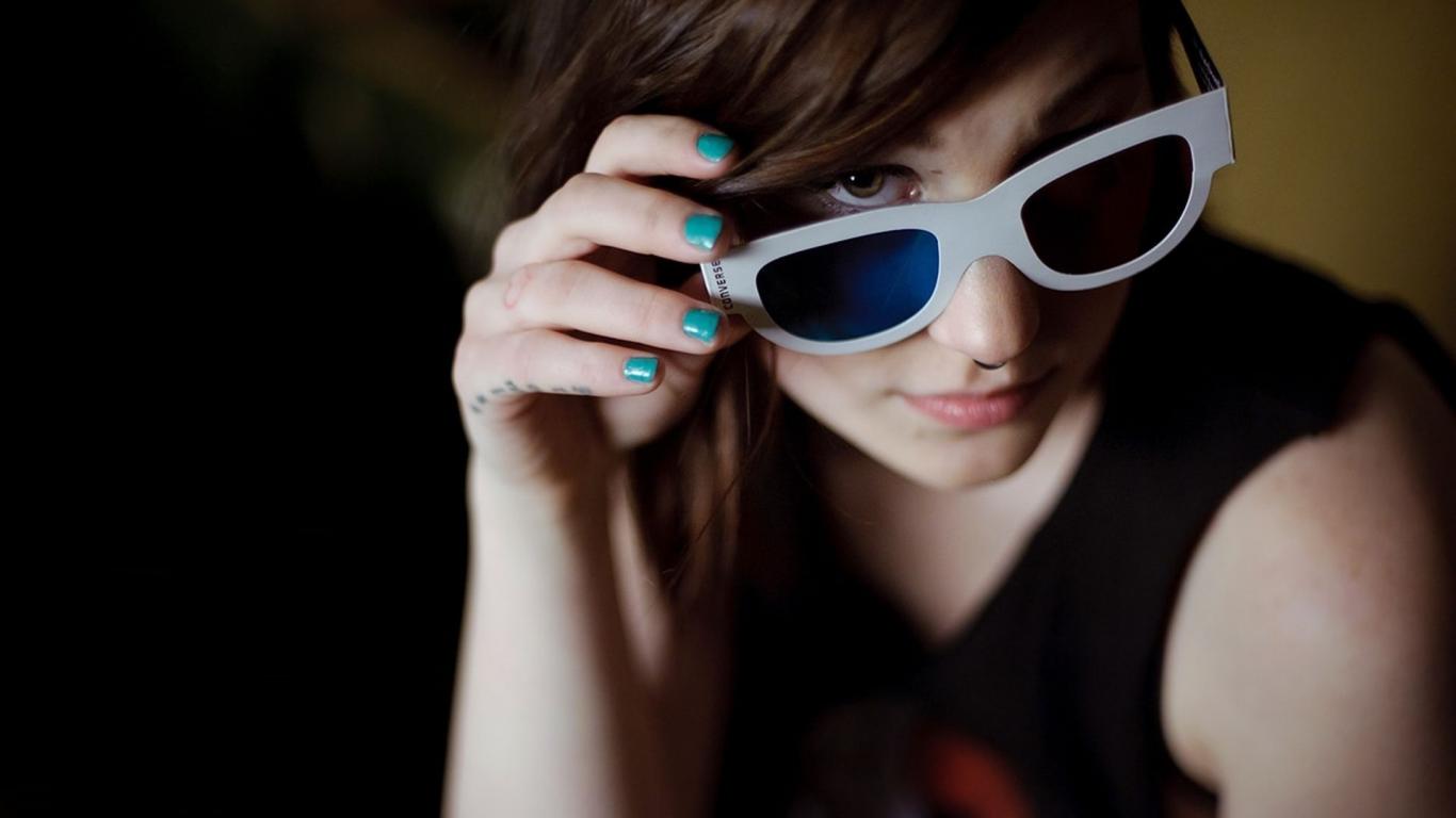 Обои Девушка брюнетка в очках и с пирсингом в носу