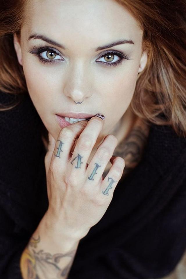 Обои Девушка шатенка с пирсингом в носу и татуировкой на руке