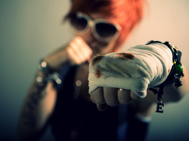 Обои Сбитый кулак у девушки боксера