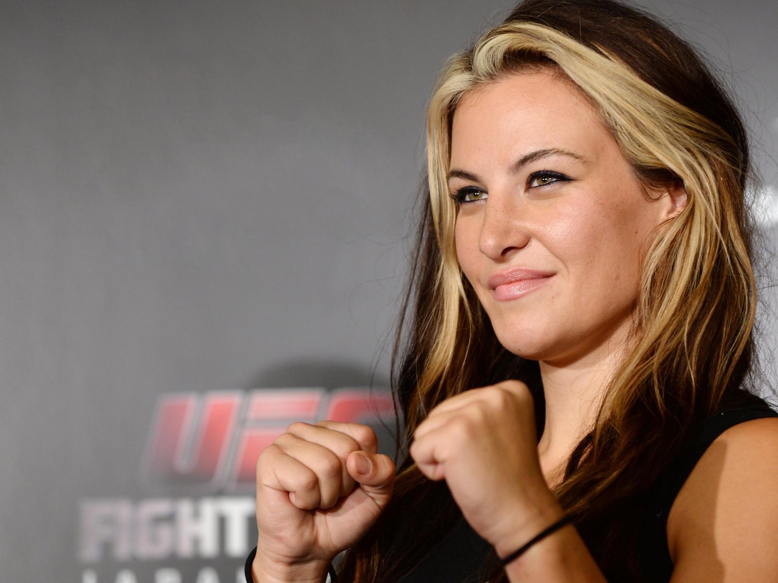 Обои Блондинка Миша Тейт держит кулаки
