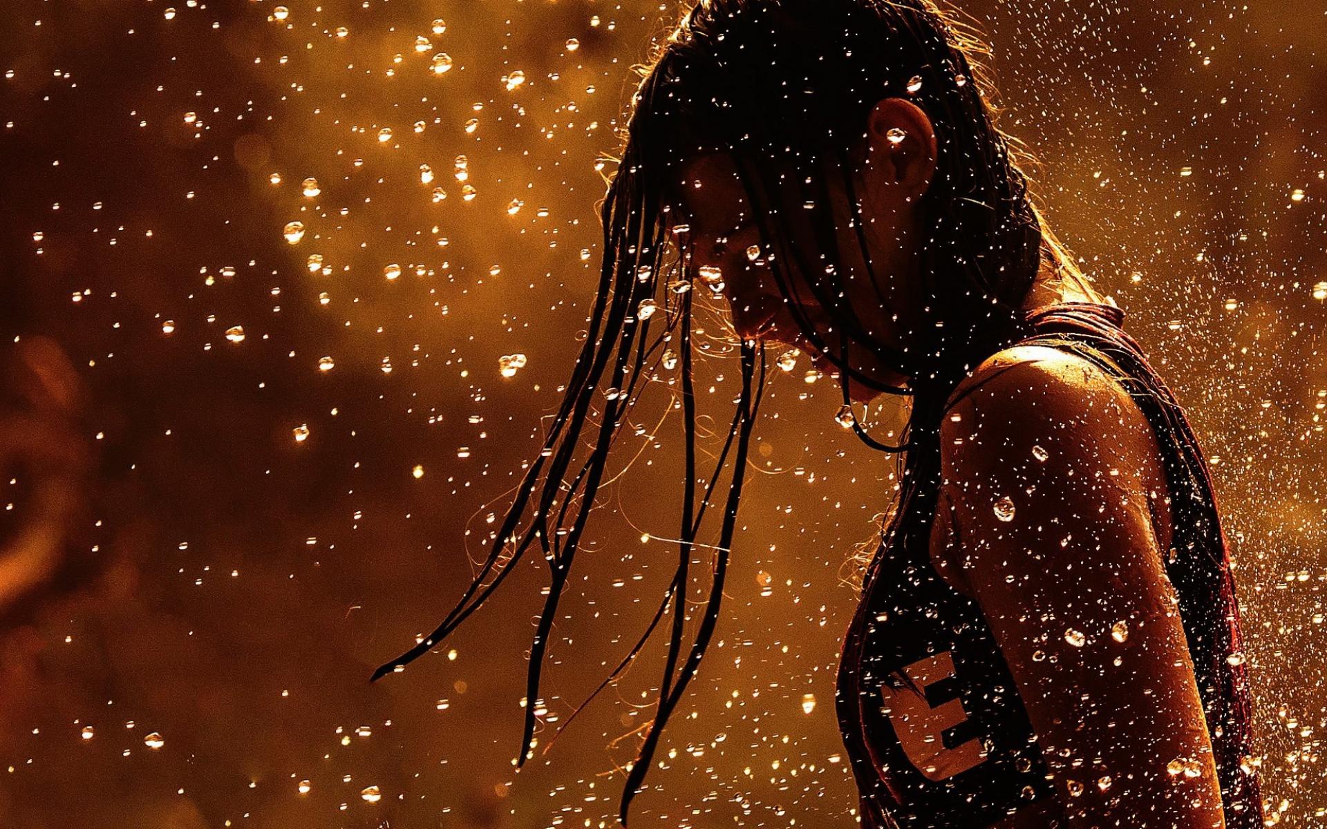 Обои Девушка спортсменка среди капель дождя