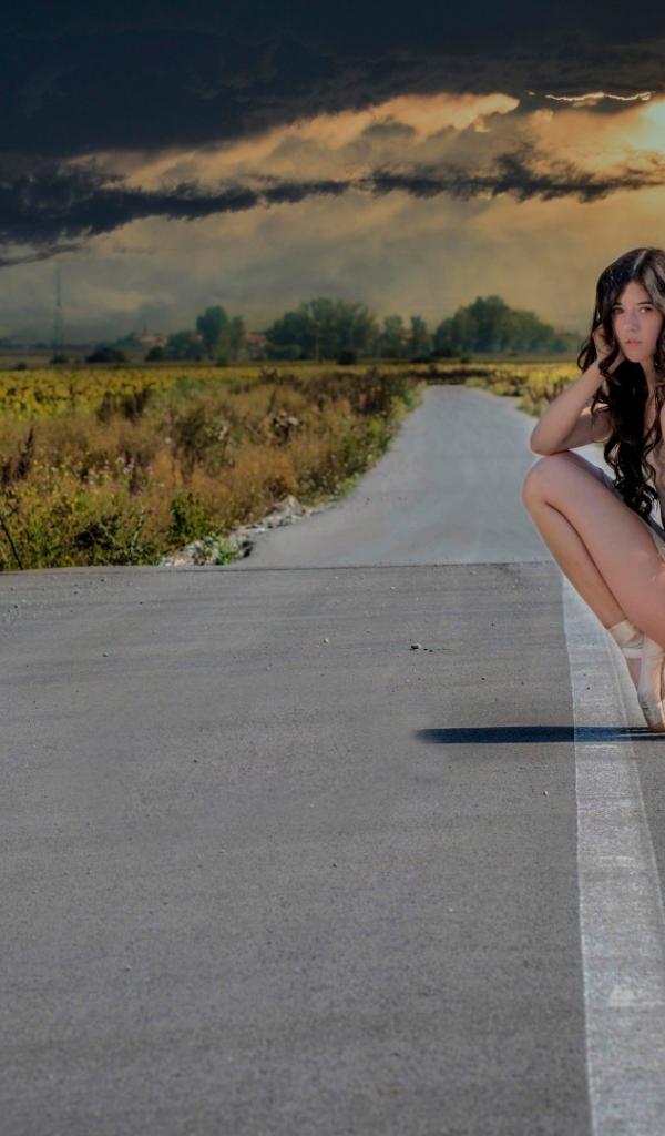 Обои Балерина на дорожной разметке