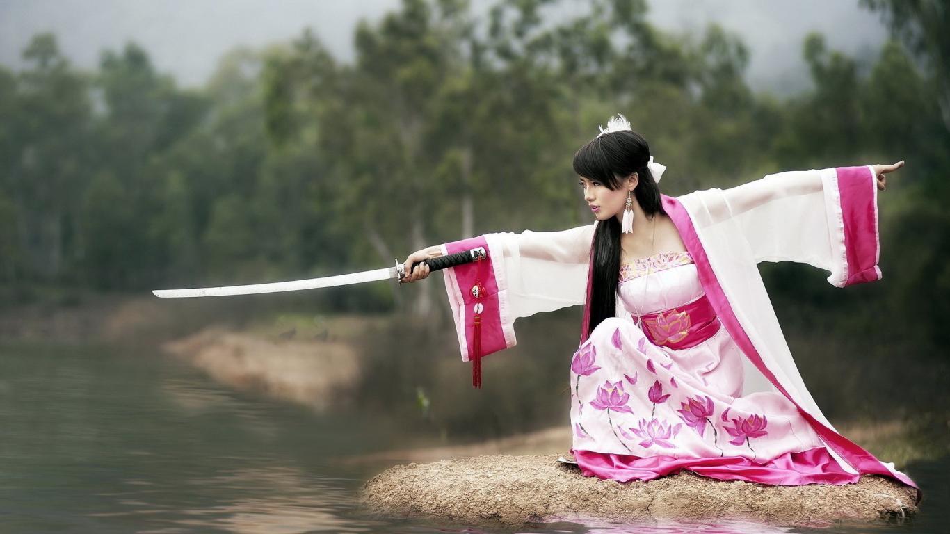 Обои Японская девушка с мечем