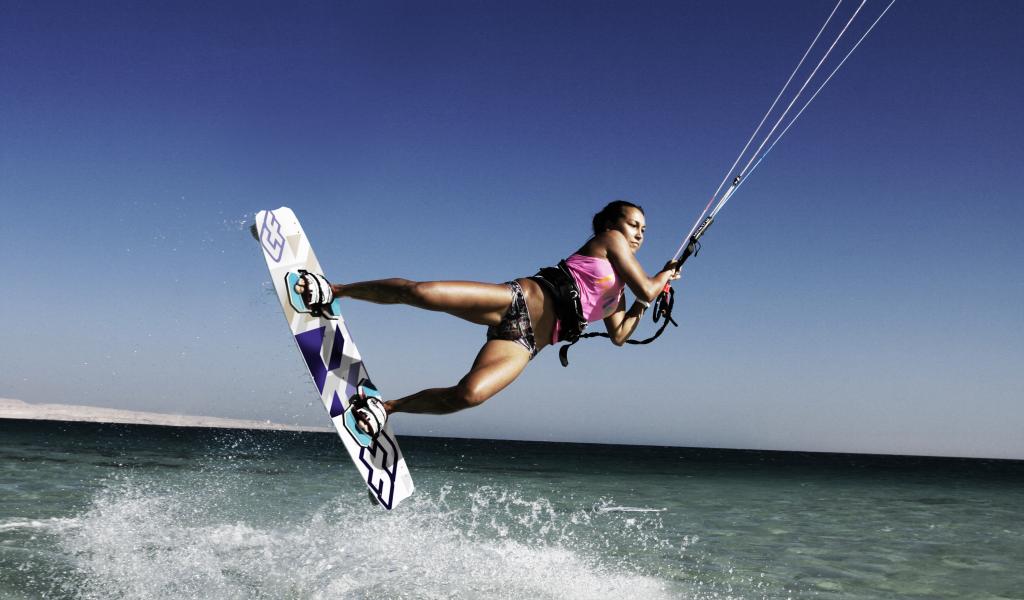 Обои Девушка заниматься кайтингом
