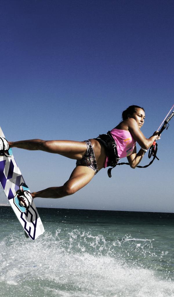 Обои Девушка заниматься кайтингом