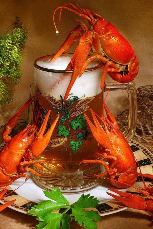 Обои Пиво с вареными раками