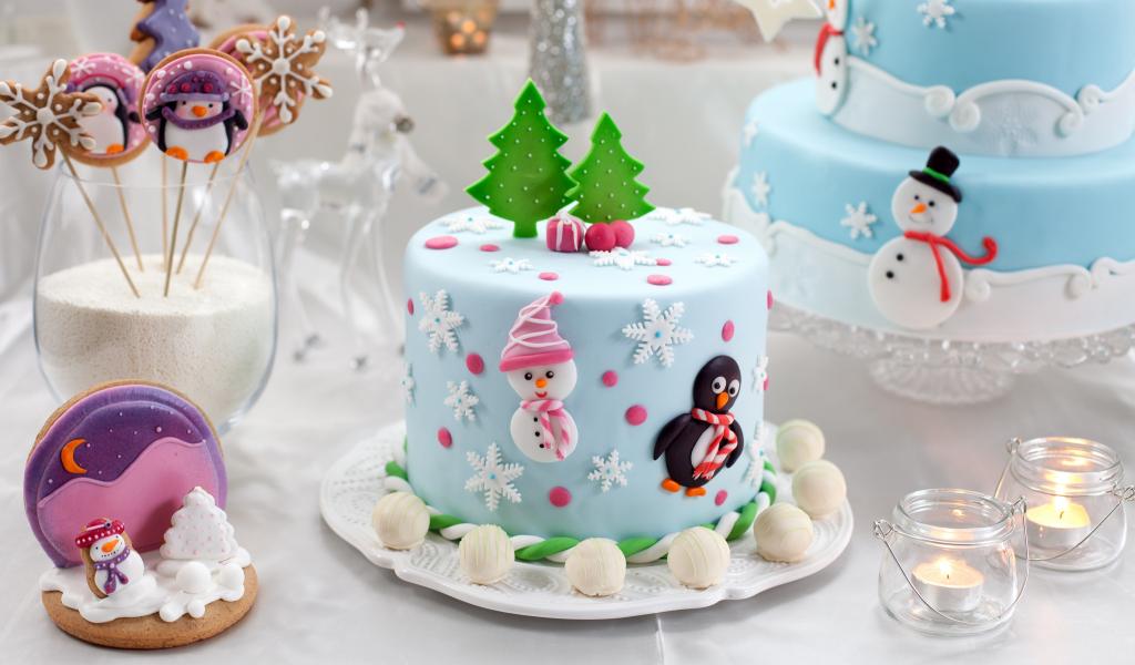 Обои Свеча, стакан, снеговик, торты