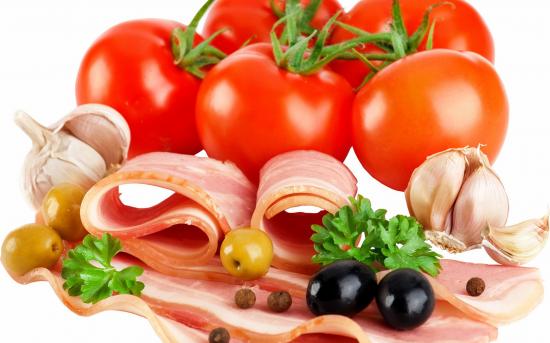 Обои Томаты, Красные помидоры, Чеснок, Оливки
