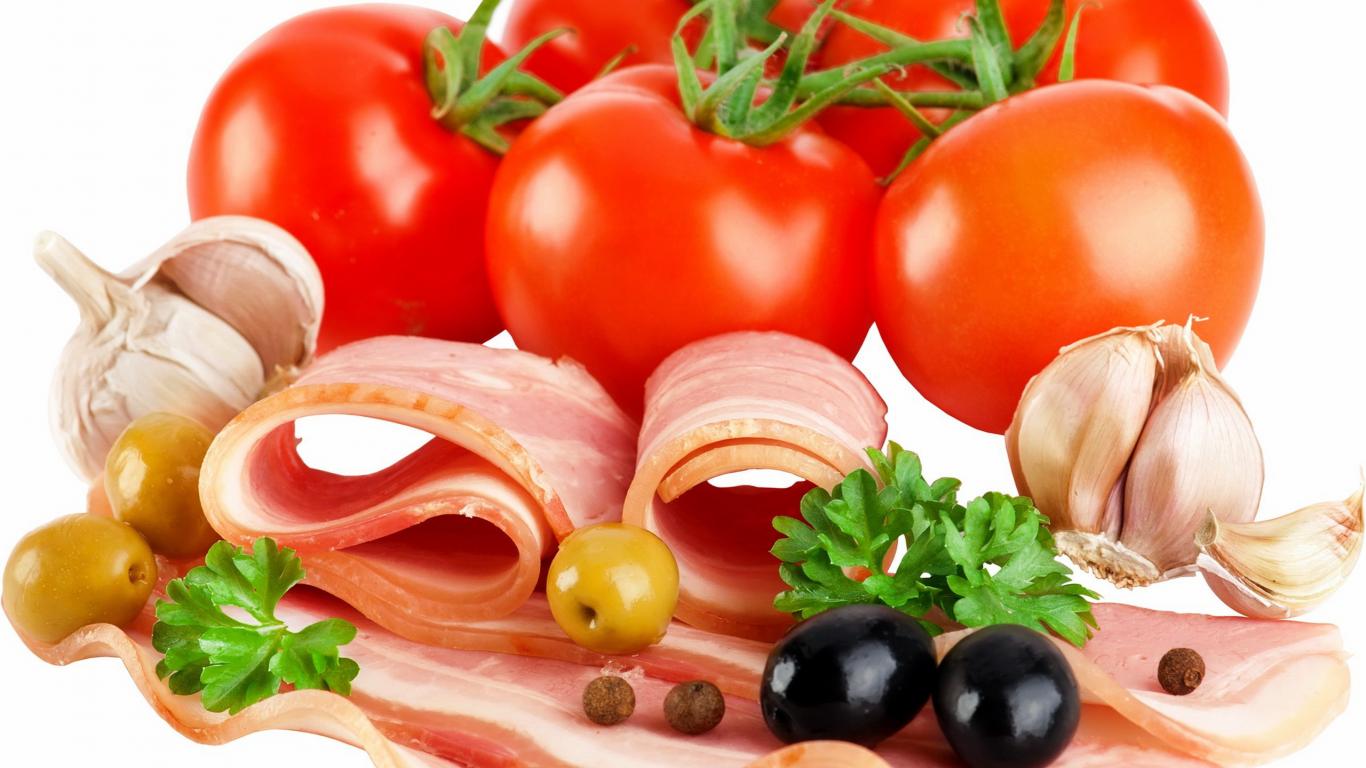 Обои Томаты, Красные помидоры, Чеснок, Оливки