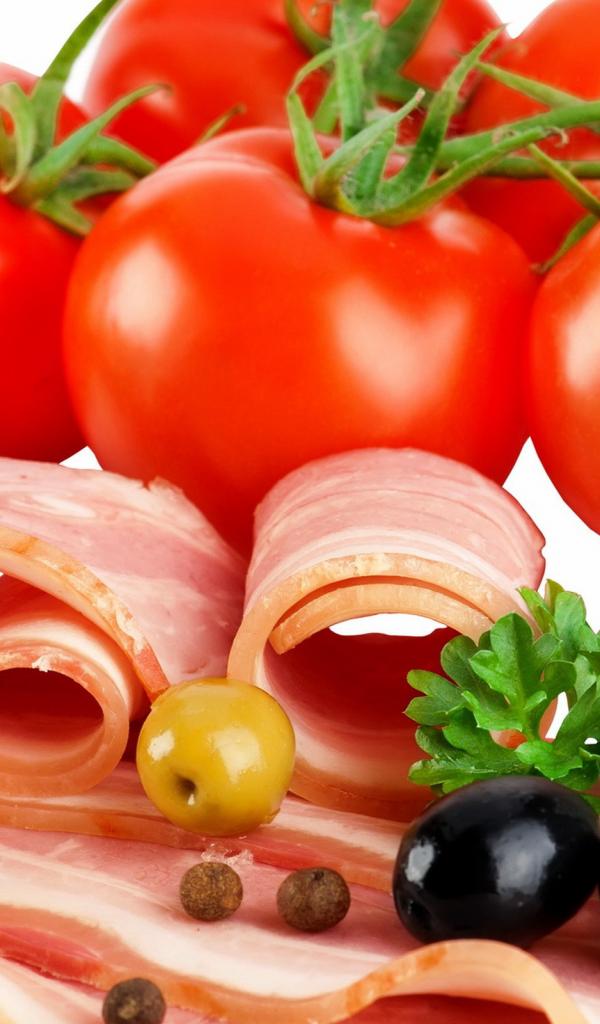 Обои Томаты, Красные помидоры, Чеснок, Оливки