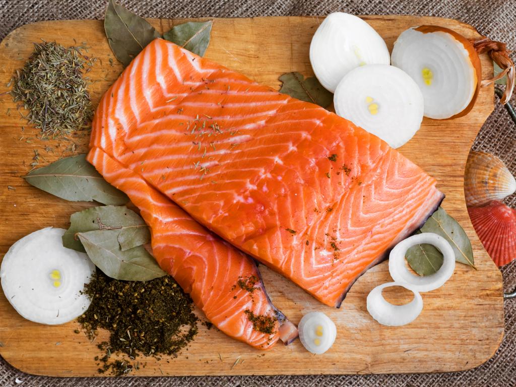 Обои Красная рыба со шпинатом и соусом