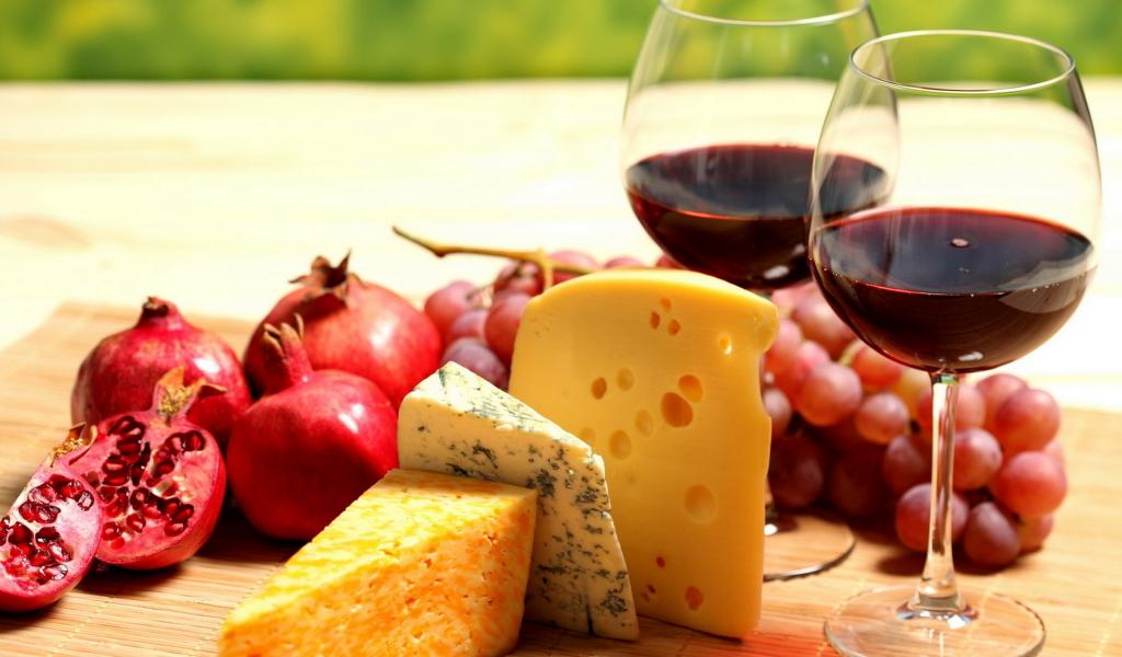 Обои Ягоды, сыр, вино