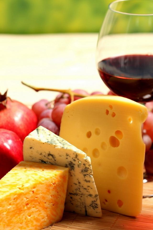 Обои Ягоды, сыр, вино
