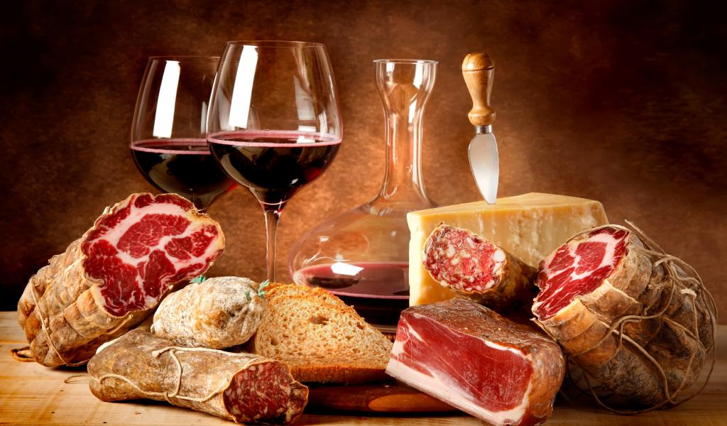 » Обои нож, вино, мясо