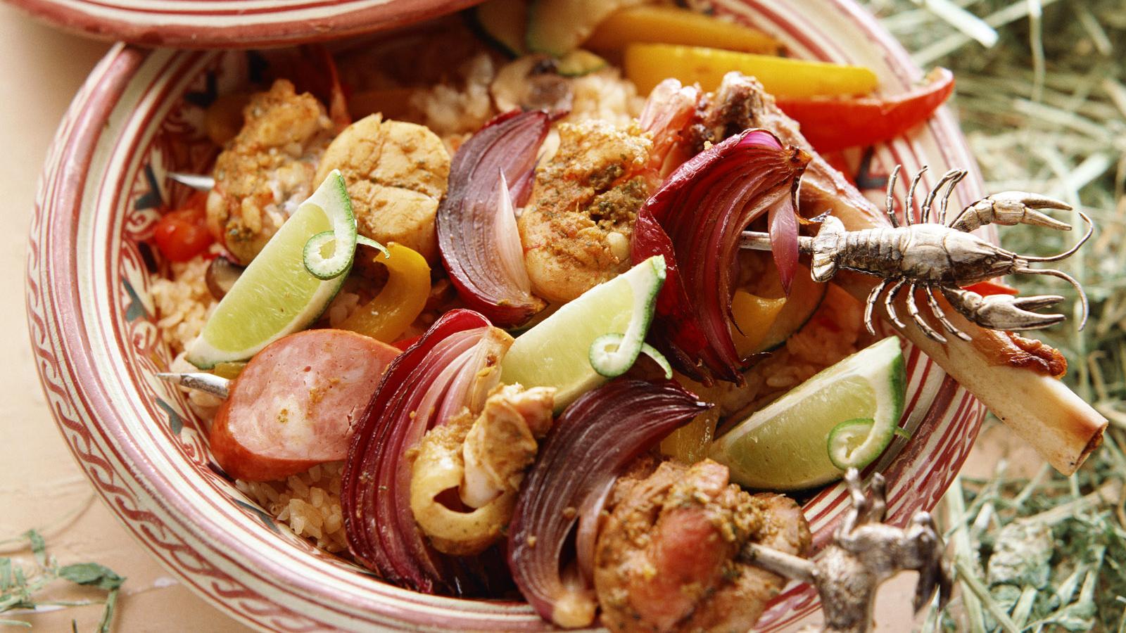 Обои Мясное блюдо с морепродуктами