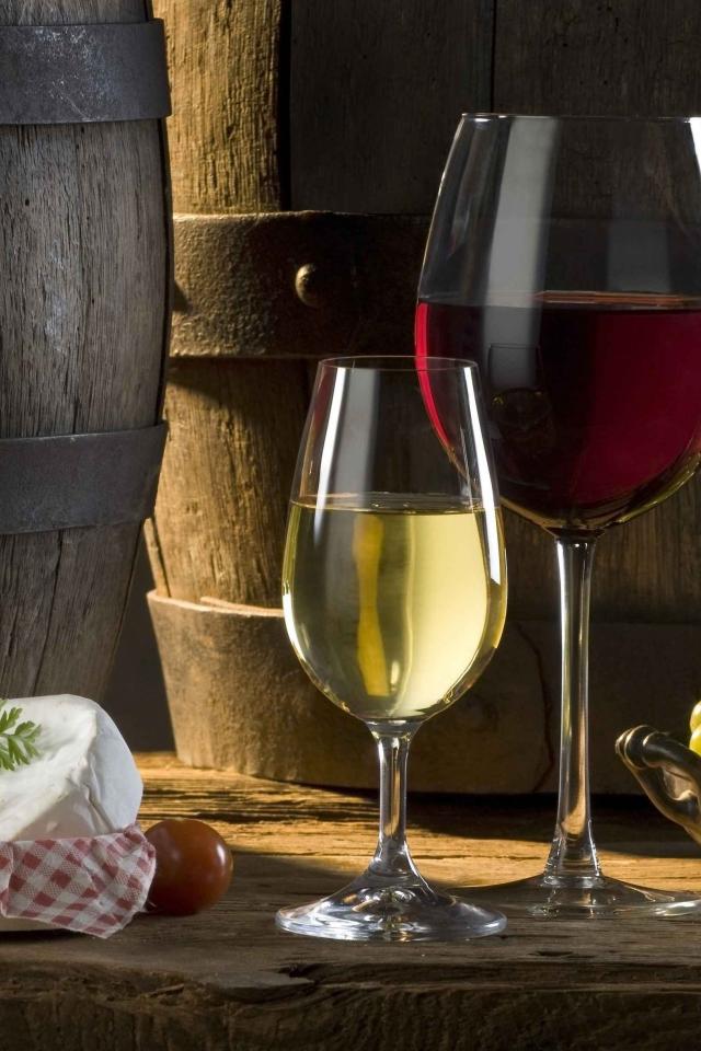 Обои Бокалы с белым и красным вином
