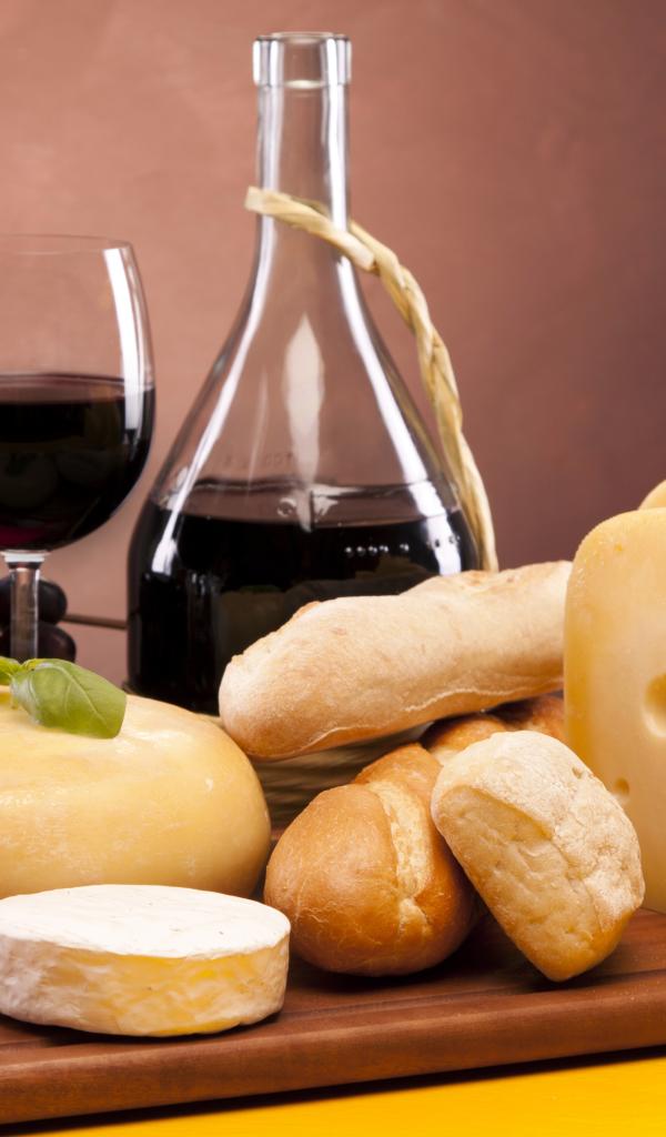 Обои Красное вино и сыр