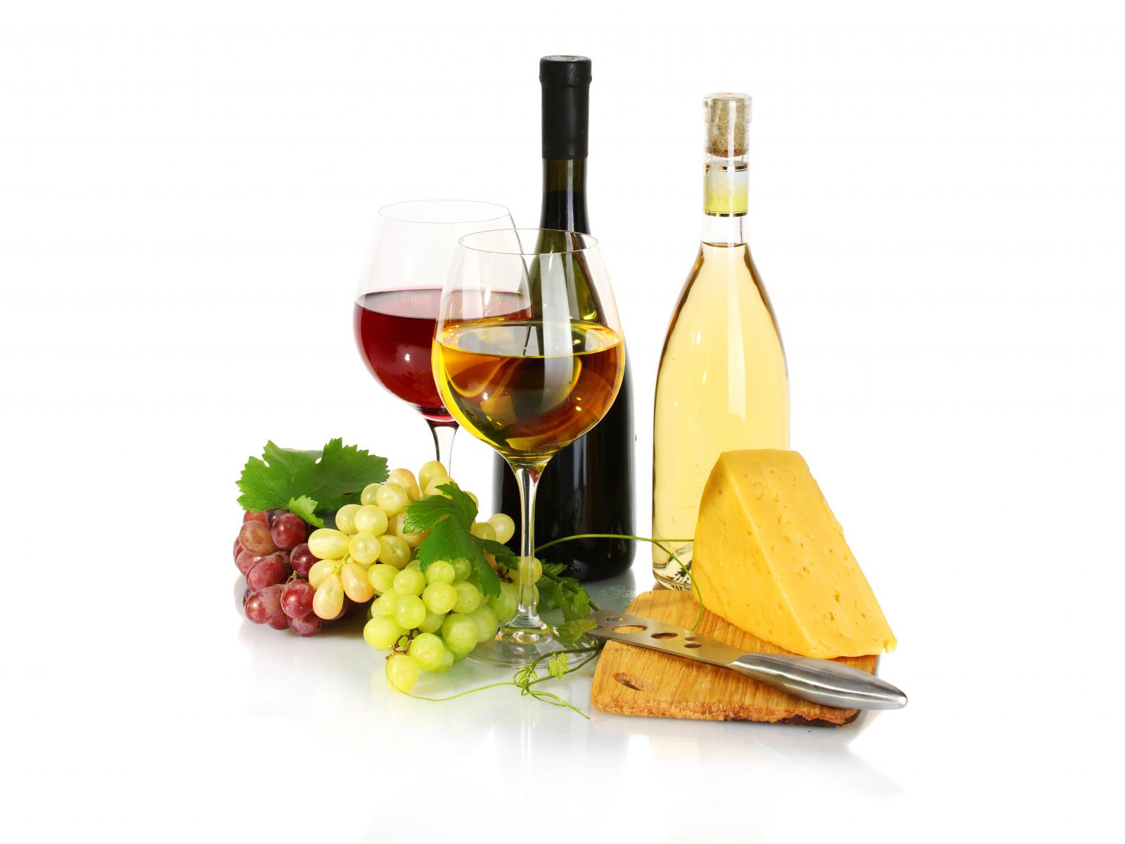 » Обои Два бокала вина виноград и сыр