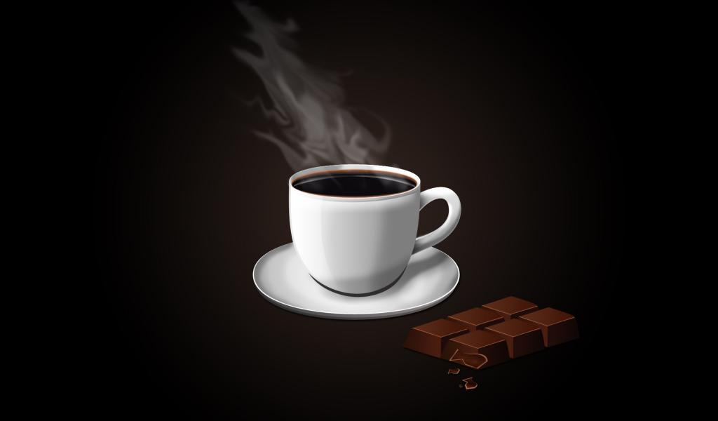 Обои Чашка кофе с плиткой шоколада