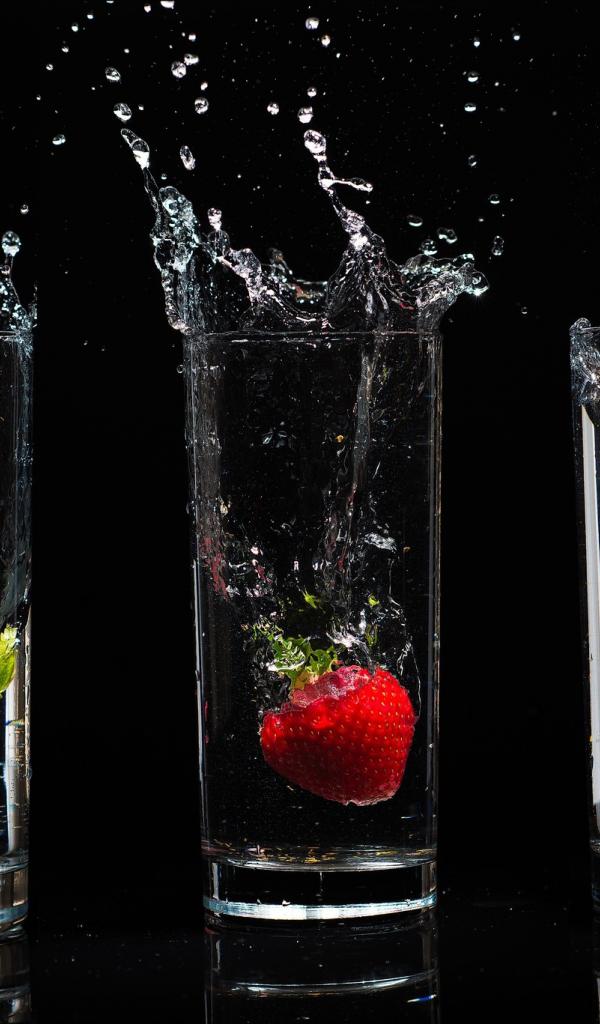 Обои Бокал с клубникой