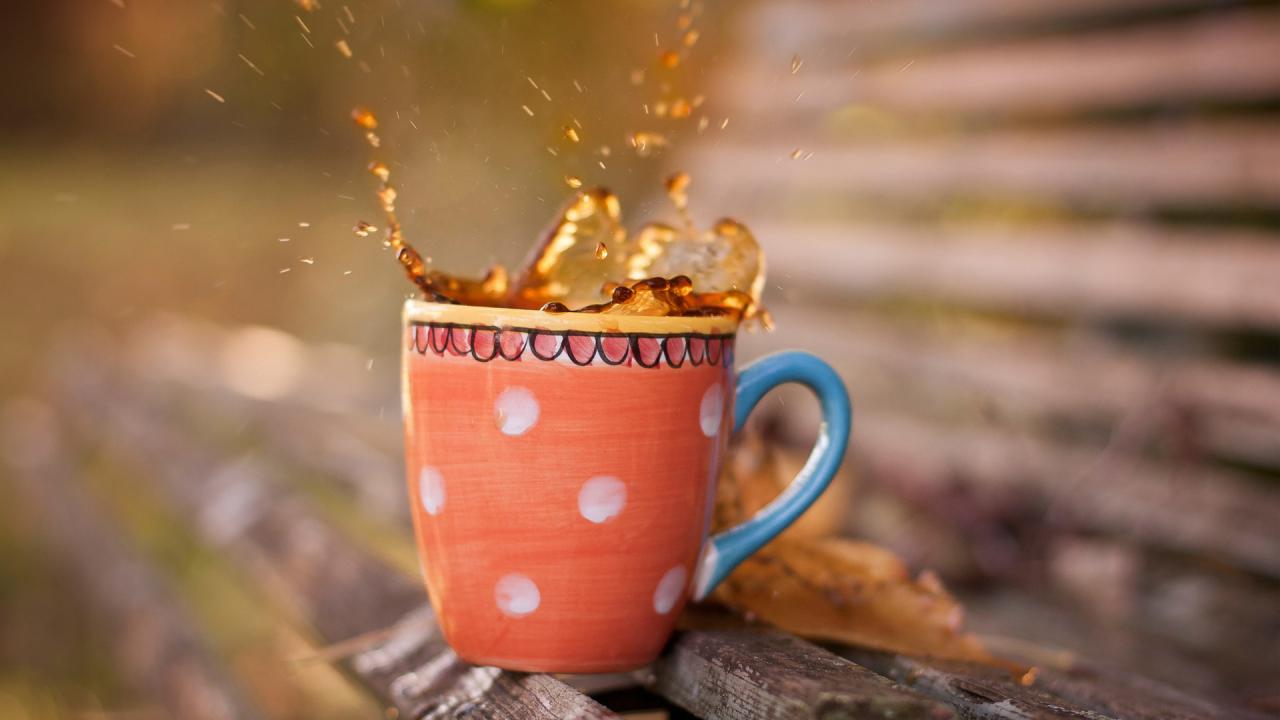 Обои Скамейка, Брызги, чай