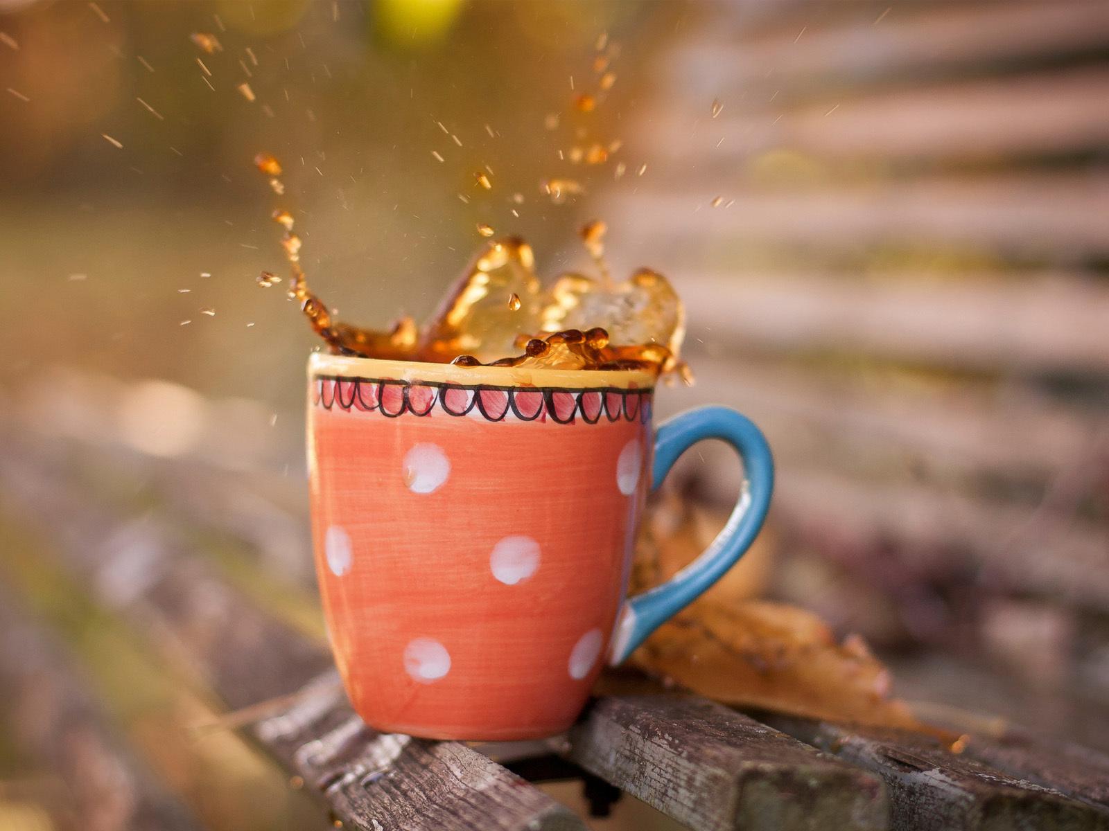 Обои Скамейка, Брызги, чай