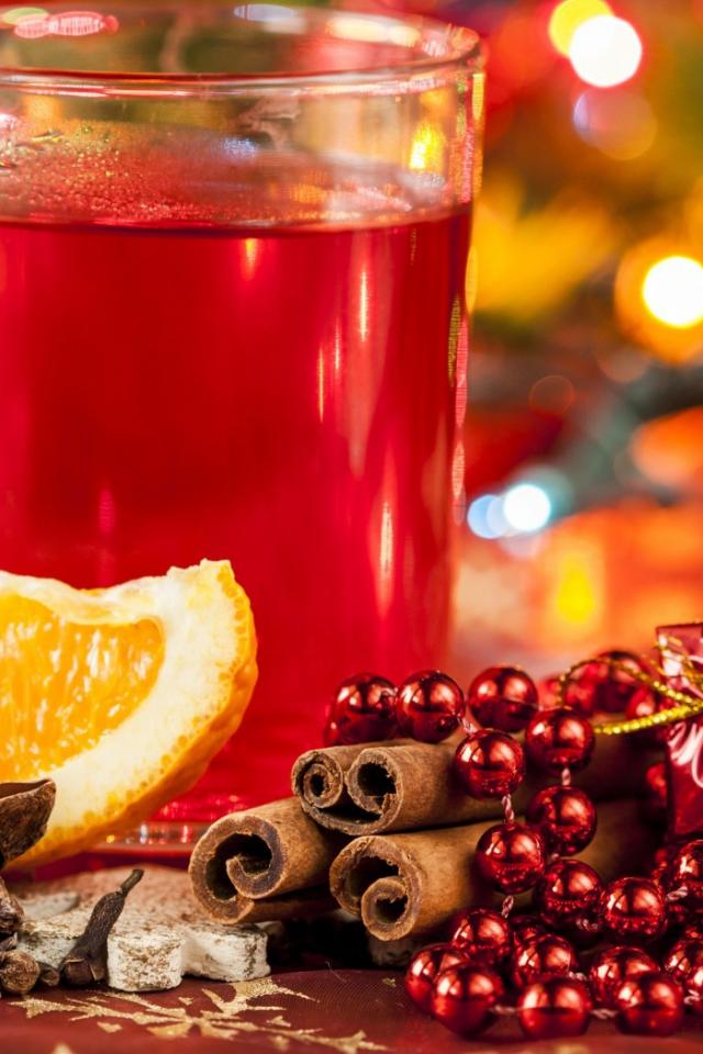 Обои Апельсин, бусы, корица, глинтвейн
