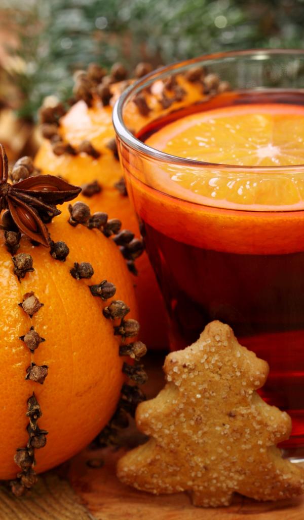 Обои Апельсин, печенье, корица, глинтвейн