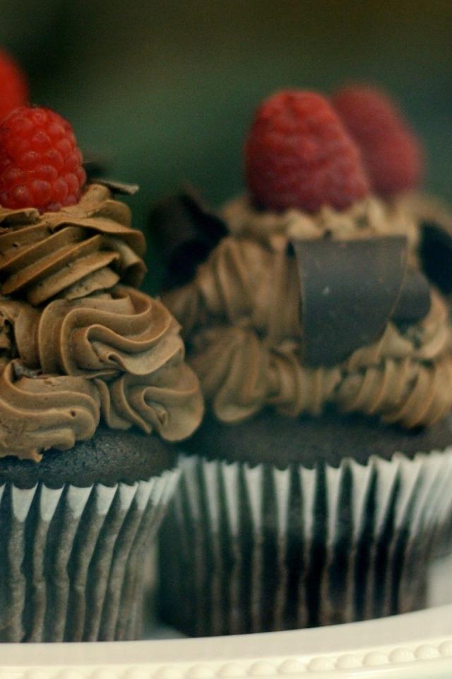Обои Шоколадные кексы с кофейным кремом и ягодами