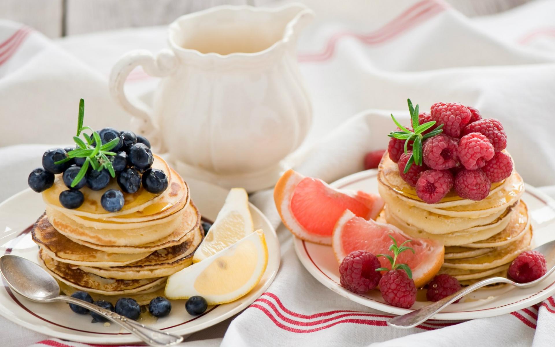 Обои Вкусные блинчики с малиной и голубикой